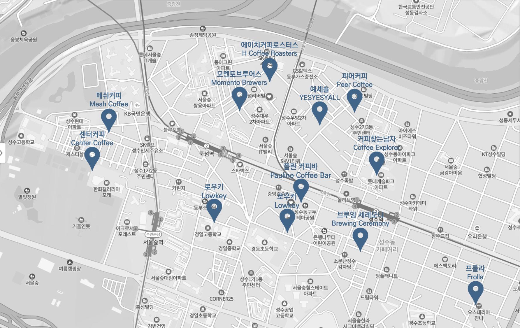 이외에도 예셰숄, 브루잉 세레모니, 폴린 커피바, 프롤라, 커피 찾는 남자를 추천드리며, 기회가 된다면 '성수동 브루잉 카페 & 에쏘바 가이드 2탄'으로 이 카페들의 후기를 남겨보도록 하겠습니다.
