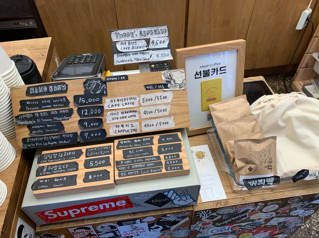 메쉬커피를 한마디로 표현하자면 성수에서 가장 성수다운 카페입니다. 성수가 홍대·합정과 이태원으로 대표되는 서울의 핫플레이스 계보를 잇기 전부터 큰 대로변을 마주하고 있는 환한 공간 안에 독특하고 창의적인 소품을 가득채운 디자인이 돋보이는 성수의 원조 카페입니다.