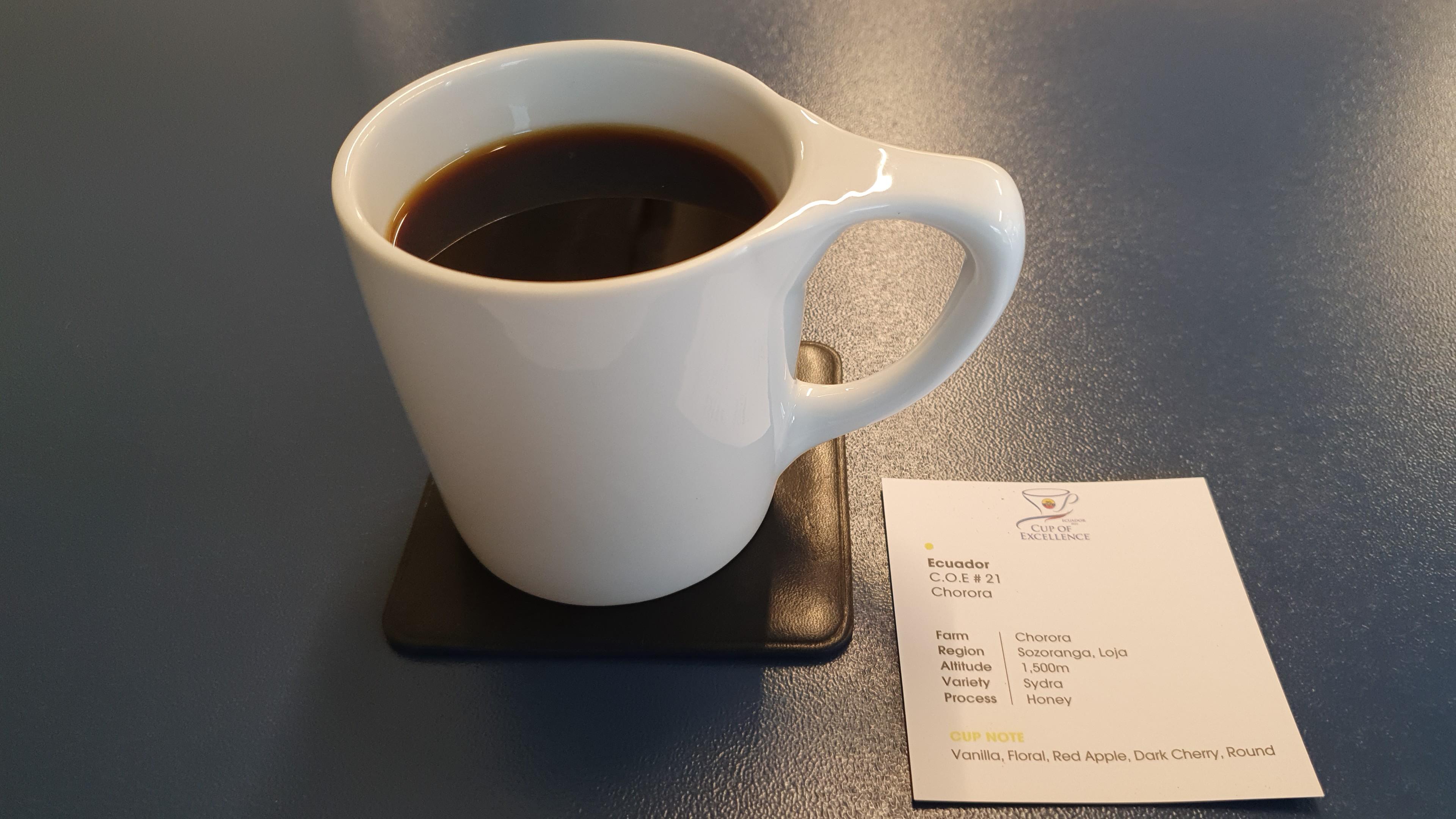 콜롬비아 다나스티아 게이샤를 마실까 했는데, 그 옆에 정말 흔치 않은 에콰도르 COE#21 초로라가 보였습니다. 바닐라와 사과 노트가 궁금해 게이샤 대신 에콰도르 초로라를 선택했습니다.