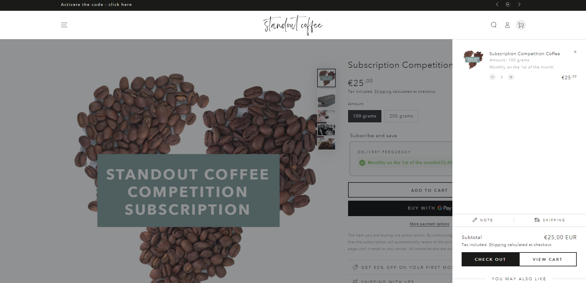 - Standout Coffee Competition Subscription (100g / 25.0€ per Month)